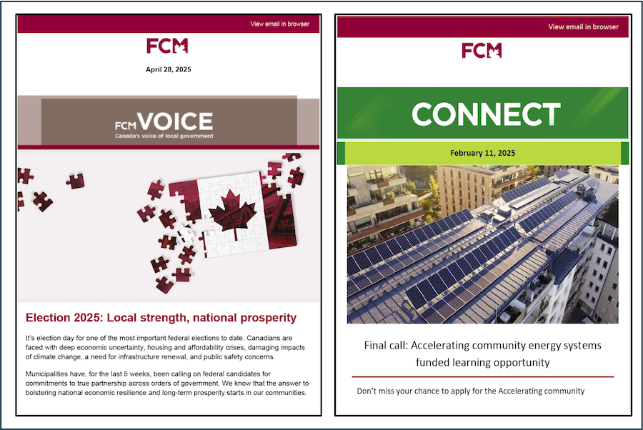The last, unexpected source influencing matters was the Federation of Canadian Municipalities (FCM). Through the access to information request, I discovered that the town was exposed to a torrent of information from the FCM promoting addressing climate change and being involved with its Partners for Climate Protection program, co-sponsored with ICLEI. About 60% (134 pages) of the 220 pages of records received corresponded to weekly newsletters (FCM Connect and FCM Voice) received from the Federation of Canadian Municipalities. Recipients included the CAO, other members of the Administration, the Mayor and members of Council. As I had mentioned in my delegation presentation on February 18, 2025, while the FCM represents itself as “We are the national voice for Canada’s local governments”, as one of the creators of the PCP program in 1994 along with ICLEI, it has become in reality, “the United Nations’ voice for Canada’s local governments”.